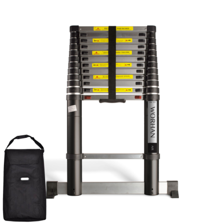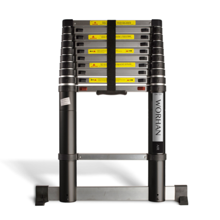Die einzelnen Stufen der Teleskopleitern werden mit LUFT sanft und bequem abgesenkt. ABSOLIUT NEUE TECHNOLOGIE. In der Produktionsphase war der Fokus ausgerichtet auf: Sicherheit, Haltbarkeit und insbesondere Stabilität bei Arbeiten in der Maximalhöhe. Wir empfehlen diese Leiter für Profis und ambitionierte Heimwerker. Fußstabilisator und Fingersicherheit beim Ein- und Ausfahren der Leiter sind integriert. Das sind einzigartige Multifunktions -Teleskopleiter der neuen Generation. Dank der innovativen Technologien zeichnen sie sich durch die einwandfreien Lagerung- und Beförderungseigenschaften aus und ersetzen mehrere Arten der Standardleiter. Sie werden sowohl im privaten als auch im gewerblichen Bereich verwendet. Diese Aluminiumleitern werden gemäß neuesten Technologien aus Aluminium der höchsten Qualität hergestellt. Das gewährleistet lange Dienstzeit und Stabilität in der Arbeitsumgebung. Sichere Arbeitsbelastung beträgt 150 kg. Sie erfüllen den europäischen Sicherheitsstandard EN131. Man kann die Länge der Leiter schnell verändern. • Gummistützungen der Leiter garantieren Sicherheit auf allen Arbeitsoberflächen und gewährleisten gute Haftkraft. • Stabilisator gewährt zusätzliche Sicherheit und Stabilität. • Zuverlässige Einrichtung für Fixieren der Höhe.