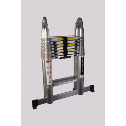 Höhe (voll ausgestreckt): 500cm., Höhe wie Trittleiter: 243cm (an der Apex)., Sprossen 2x8., Gefaltete Größe: 94cm x 47cm x 19cm., Gewicht: 19.7kg.