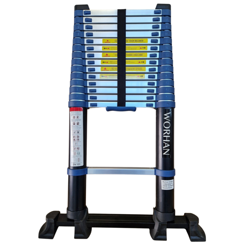 Die neue Alternative zu herkömmlichen Leitern, die Teleskopleiter hat viele Anwendungen sowohl für den Amateur- als auch für den professionellen Einsatz., Einzigartiges Design, die Leiter öffnet und schließt "Schritt für Schritt", bis zur maximalen Höhe, sodass Sie sie nur bis zur erforderlichen Höhe öffnen ermöglicht eine große Manövrierfähigkeit, besonders auf engstem Raum., Zusammengeklappt ist die Leiter äußerst kompakt und leicht zu transportieren.