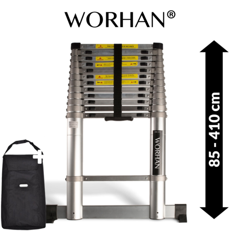 Das sind einzigartige Multifunktions -Teleskopleiter der neuen Generation.Dank der innovativen Technologien zeichnen sie sich durch die einwandfreien Lagerung- und Beförderungseigenschaften aus und ersetzen mehrere Arten der Standartleiter. Sie werden sowohl im privaten als auch im gewerblichen Bereich verwendet.Diese Aluminiumleiter werden gemäß neuesten Technologien aus Aluminium derhöchsten Qualität hergestellt. Das gewährleistet lange Dienstzeit und Stabilität in der Arbeitsumgebung. Sichere Arbeitsbelastung beträgt 150 kg.Sie erfüllen den europäischen Sicherheitsstandard EN131. Man kann die Länge der Leiter schnell verändern. Gummistützungen der Leiter garantieren Sicherheit der Arbeitsoberflächenund gewährleisten gute Haftkraft.Stabilisator gewährt zusätzliche Sicherheit und Stabilität.Zuverlässige Einrichtung für Fixieren der Höhe.Höhe : 4.1m (voll ausgestreckt)Sprossen : 14Gefaltete Größe : 92 x 47 x 10 cm.Gewicht 12.2 kgStabilisator 77 cm