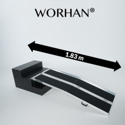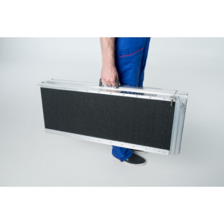 Hohe Anti-Rutsch-Funktion! Diese Rampe lässt sich sehr einfach zusammenklappen (zweimal: in Länge und Breite)., EXTRA Widerstandsfähige und rutschfeste Oberfläche auch bei nassem oder regnerischem Wetter., Langlebiges Produkt im Laufe der Zeit., Material: hochwertiges eloxiertes Aluminium., Optimiertes, solides und einzigartiges Design., Sehr praktisch für die Handhabung oder den Transport und die Lagerung.