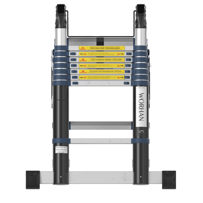 WORHAN Doppel-Teleskopleiter *** Linie C - Qualitäts-Doppelteleskopleitern, die alle Sicherheitsanforderungen erfüllen und bestens für den Amateurgebrauch geeignet sind. ***** Linie B - Qualitäts-Doppelteleskopleitern, die alle Sicherheitsanforderungen erfüllen. Da die Leiter mit 2 Stabilisatoren ausgestattet ist, bietet sie eine bessere Stabilität, wenn sie in der „A“-Position oder vollständig ausgezogen verwendet wird. ***** Linie A - das sind die höchsten Doppelteleskopleitern, die wir herstellen. In der Produktionsphase wurde Wert auf Sicherheit, Haltbarkeit und maximale Stabilitätsverbesserung insbesondere bei Arbeiten in der Höhe gelegt. Wir empfehlen diese Leitern für den täglichen und ständigen Gebrauch für Profis und Amateure.