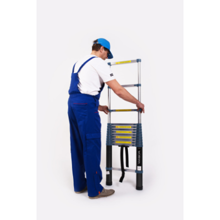 B-Linie- Qualitätsteleskopleiter mit allen Sicherheitsvoraussetzungen. Der eingesetzte Stabilisator verleiht der Leiter eine höhere Stabilität während des Arbeitseinsatzes. Während des Produktionsprozesses lag unsere besondere Aufmerksamkeit auf Details und der Stabilität der Leiter.