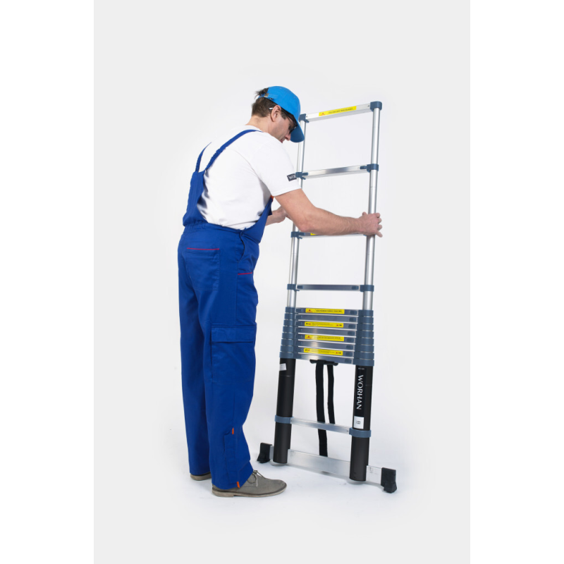 WORHAN Einfach-Teleskopleiter *** C-Linie: Hochwertige Einfach-Teleskopleitern, die alle Sicherheitsanforderungen erfüllen und bestens für den Amateurgebrauch geeignet sind. *** B-Linie : einfache Teleskopleitern, die alle Sicherheitsanforderungen erfüllen. Sie verfügt über zusätzliche Stabilisatoren, die eine viel höhere Stabilität während des Gebrauchs bieten.*** A-Linie: die hochwertigsten Teleskopleitern, die wir herstellen. In der Produktionsphase wurde Wert auf Sicherheit, Haltbarkeit und maximale Stabilitätsverbesserung insbesondere bei Arbeiten in der Höhe gelegt. Wir empfehlen es Profis und Amateuren für den täglichen Gebrauch. Integrierte Sicherheitsvorrichtungen und Stabilisatorstange.