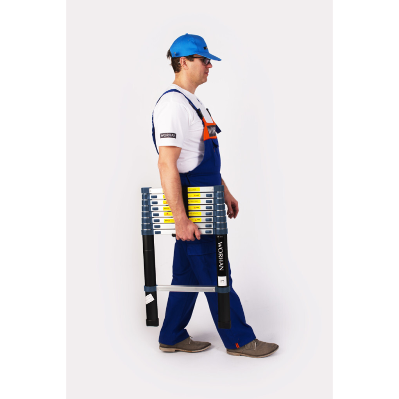 A-Linie-Dies ist die Teleskopleiter von der höchsten Qualitätsstufe, die wir herstellen. In der Produktionsphase war der Fokus ausgerichtet auf: Sicherheit, Haltbarkeit und insbesondere Stabilität bei Arbeiten in der Maximalhöhe. Wir empfehlen diese Leiter für Profis und ambitionierte Heimwerker. Fußstabilisator und Fingersicherheit beim Ein- und Ausfahren der Leiter sind integriert.