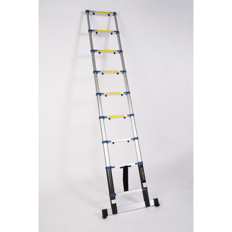 B-Linie- Qualitätsteleskopleiter mit allen Sicherheitsvoraussetzungen. Der eingesetzte Stabilisator verleiht der Leiter eine höhere Stabilität während des Arbeitseinsatzes. Während des Produktionsprozesses lag unsere besondere Aufmerksamkeit auf Details und der Stabilität der Leiter.