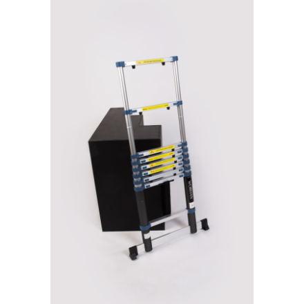 A-Linie-Dies ist die Teleskopleiter von der höchsten Qualitätsstufe, die wir herstellen. In der Produktionsphase war der Fokus ausgerichtet auf: Sicherheit, Haltbarkeit und insbesondere Stabilität bei Arbeiten in der Maximalhöhe. Wir empfehlen diese Leiter für Profis und ambitionierte Heimwerker. Fußstabilisator und Fingersicherheit beim Ein- und Ausfahren der Leiter sind integriert.