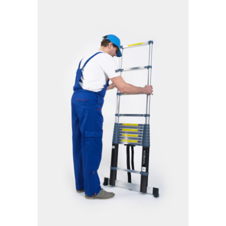 Die neue Alternative zu herkömmlichen Leitern, die Teleskopleiter hat viele Anwendungen sowohl für den Amateur- als auch für den professionellen Einsatz., Einzigartiges Design, die Leiter öffnet und schließt "Schritt für Schritt", bis zur maximalen Höhe, sodass Sie sie nur bis zur erforderlichen Höhe öffnen ermöglicht eine große Manövrierfähigkeit, besonders auf engstem Raum., Zusammengeklappt ist die Leiter äußerst kompakt und leicht zu transportieren.