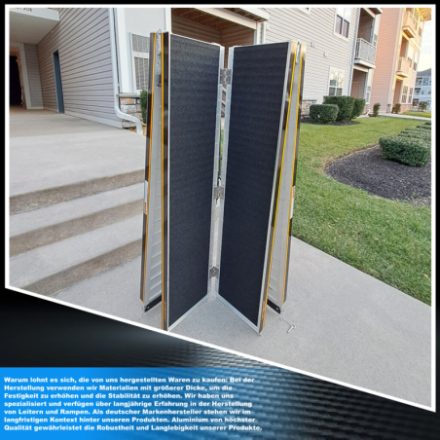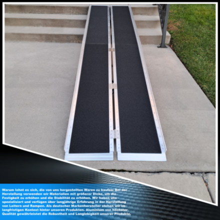 Warum lohnt es sich, die von uns hergestellten Waren zu kaufen: Bei der Herstellung verwenden wir Materialien mit größerer Dicke, um die Festigkeit zu erhöhen und die Stabilität zu erhöhen., Wir haben uns spezialisiert und verfügen über langjährige Erfahrung in der Herstellung von Leitern und Rampen., Als deutscher Markenhersteller stehen wir im langfristigen Kontext hinter unseren Produkten. Aluminium von höchster Qualität gewährleistet die Robustheit und Langlebigkeit unserer Produkte.