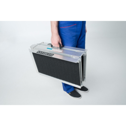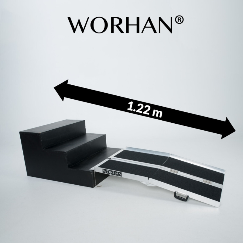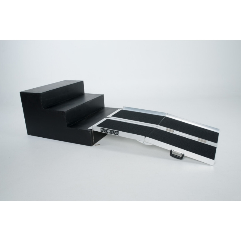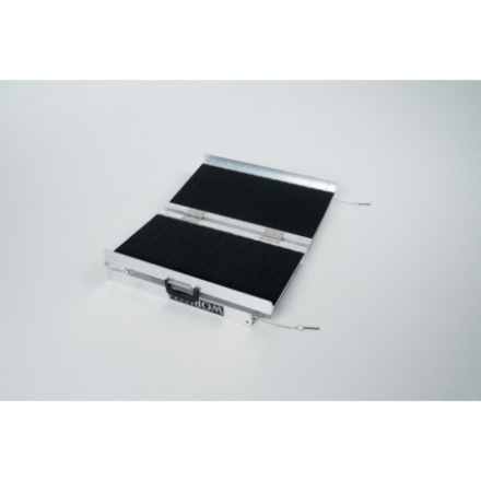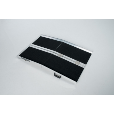 Hohe Anti-Rutsch-Funktion! Diese Rampe lässt sich sehr einfach zusammenklappen (zweimal: in Länge und Breite)., EXTRA Widerstandsfähige und rutschfeste Oberfläche auch bei nassem oder regnerischem Wetter., Langlebiges Produkt im Laufe der Zeit., Material: hochwertiges eloxiertes Aluminium., Optimiertes, solides und einzigartiges Design., Sehr praktisch für die Handhabung oder den Transport und die Lagerung.