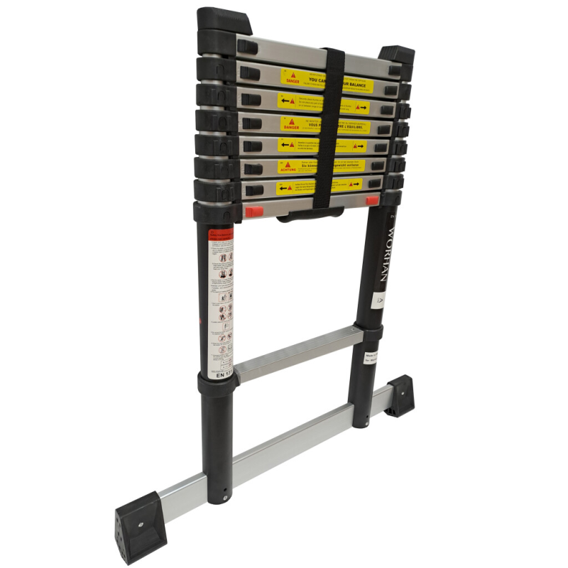 Das sind einzigartige Multifunktions -Teleskopleiter der neuen Generation.Dank der innovativen Technologien zeichnen sie sich durch die einwandfreien Lagerung- und Beförderungseigenschaften aus und ersetzen mehrere Arten der Standartleiter. Sie werden sowohl im privaten als auch im gewerblichen Bereich verwendet.Diese Aluminiumleiter werden gemäß neuesten Technologien aus Aluminium derhöchsten Qualität hergestellt. Das gewährleistet lange Dienstzeit und Stabilität in der Arbeitsumgebung. Sichere Arbeitsbelastung beträgt 150 kg.Sie erfüllen den europäischen Sicherheitsstandard EN131. Man kann die Länge der Leiter schnell verändern. Gummistützungen der Leiter garantieren Sicherheit der Arbeitsoberflächenund gewährleisten gute Haftkraft.Stabilisator gewährt zusätzliche Sicherheit und Stabilität.Zuverlässige Einrichtung für Fixieren der Höhe. Höhe : 2.6 m (voll ausgestreckt)Sprossen : 9Gefaltete Größe : 76 x 46 x 10 cm.Gewicht 7.3 kgStabilisator 77 cmA-Linie-Dies ist die Teleskopleiter von der höchsten Qualitätsstufe, die wir herstellen. In der Produktionsphase war der Fokus ausgerichtet auf: Sicherheit, Haltbarkeit und insbesondere Stabilität bei Arbeiten in der Maximalhöhe. Wir empfehlen diese Leiter für Profis und ambitionierte Heimwerker. Fußstabilisator und Fingersicherheit beim Ein- und Ausfahren der Leiter sind integriert.