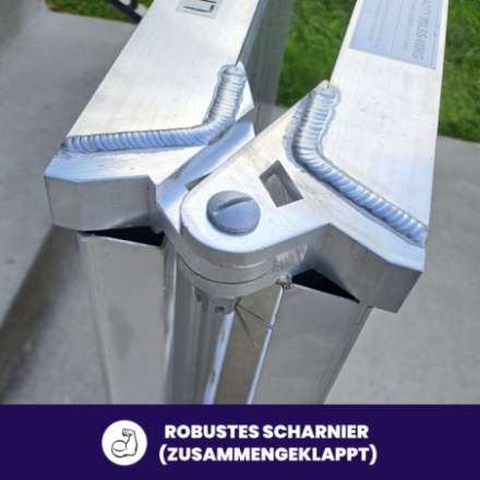 Warum lohnt es sich, die von uns hergestellten Waren zu kaufen: Bei der Herstellung verwenden wir Materialien mit größerer Dicke, um die Festigkeit zu erhöhen und die Stabilität zu erhöhen. Wir haben uns spezialisiert und verfügen über langjährige Erfahrung in der Herstellung von Leitern und Rampen. Als deutscher Markenhersteller stehen wir im langfristigen Kontext hinter unseren Produkten. Aluminium von höchster Qualität gewährleistet die Robustheit und Langlebigkeit unserer Produkte.