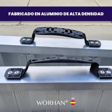 Max. empfohlene Arbeitshöhe - 56cm., Dieses Produkt ist aus hochwertigem Aluminium (EN-131- und CE-Normen) hergestellt., Maximale Belastbarkeit: 400kg.,