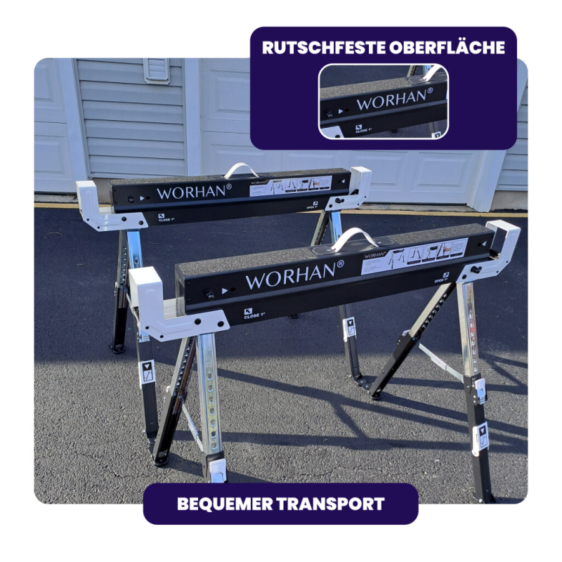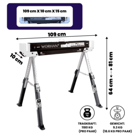 Klappbarer, günstig transportierbarer, Arbeitsbock mit integriertem Handgriff.