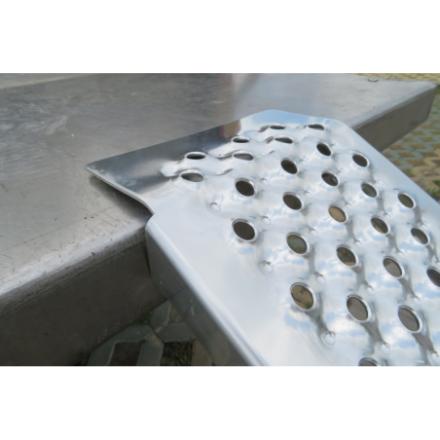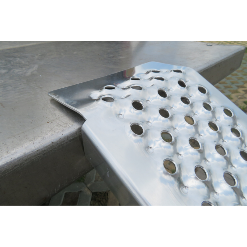 Das Produkt ist aus hochwertigem Aluminium nach EN- und CE-Normen gefertigt. Aus Aluminium gefertigt, sind sie extrem leicht (jeweils 3,5 kg), sehr robust und können nicht rosten. Oberfläche: perforiert - rutschfest, für hervorragende Griffigkeit