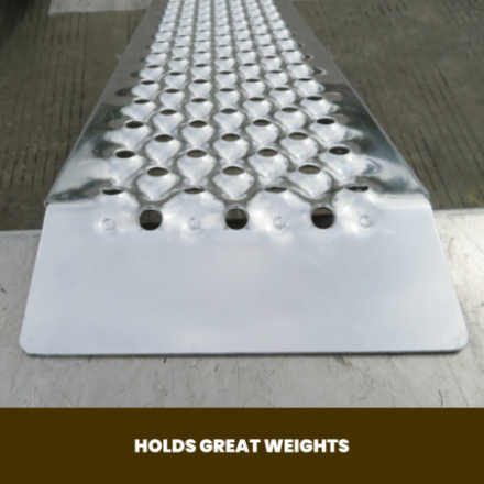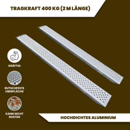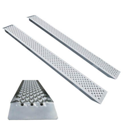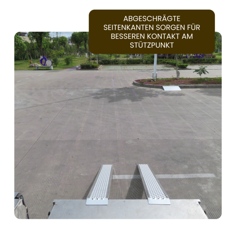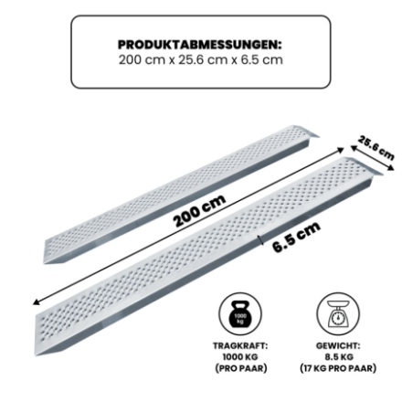 Das Produkt ist aus hochwertigem Aluminium nach EN- und CE-Normen gefertigt. Aus Aluminium gefertigt, sind sie extrem leicht (5kg pro Stück), sehr robust und können nicht rosten. Oberfläche: perforiert - rutschfest, für hervorragende Griffigkeit.