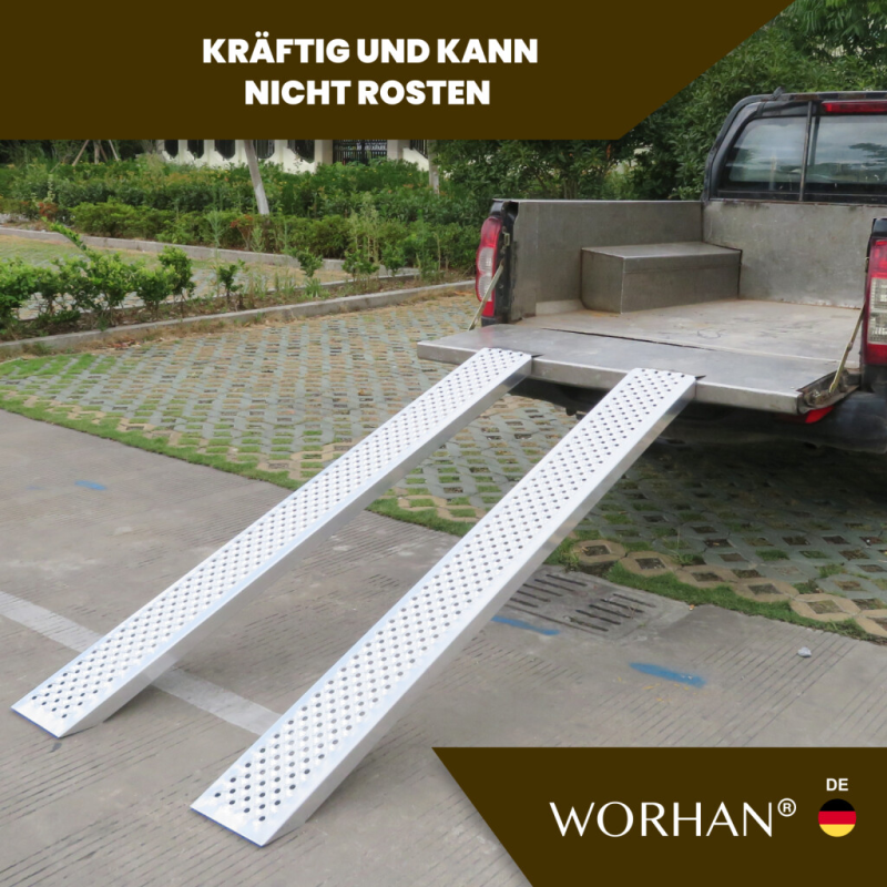 Warum Sie unsere Produkte kaufen sollten: Bei der Herstellung verwenden wir dickere Materialien für mehr Festigkeit und erhöhte Stabilität. Wir sind spezialisiert und verfügen über langjährige Erfahrung in der Herstellung von Leitern und Rampen. Als deutsches Markenunternehmen stehen wir dahinter unsere Produkte langfristig Das hochwertigste Aluminium garantiert die Robustheit und Langlebigkeit unserer Produkte.