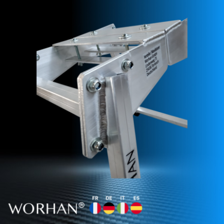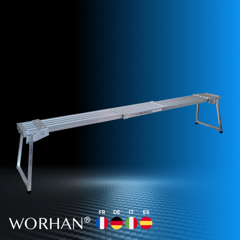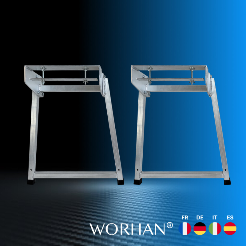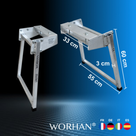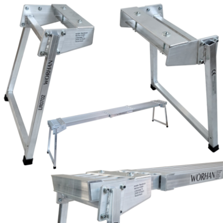 Ein Paar dieser Plattformständer (bei Verwendung mit ausziehbaren Plattformen TP240 oder TP300) schafft eine sehr stabile Arbeitsfläche in einer Höhe von 60 cm. Bitte beachten Sie, dass wir die Kompatibilität nur mit WORHAN ausziehbaren Teleskopplattformen garantieren können.