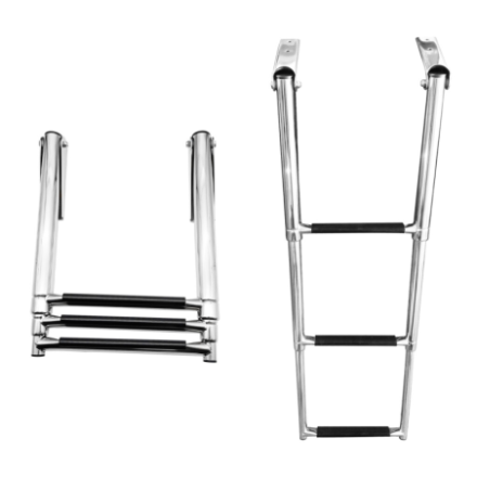 Breite Teleskopstufen. Für erhöhte Sicherheit und Komfort sind die Stufen mit rutschfestem Kunststoffmaterial überzogen