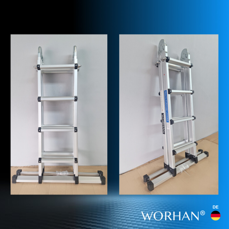 Schnelle Lieferung. Hochwertigem Alu., Stabilisator gewährt zusätzliche Sicherheit und Stabilität., Sichere Arbeitsbelastung beträgt 150 kg., Sie erfüllen den europäischen Sicherheitsstandard EN131., Sicherer, einfacher und bequemer Verriegelungsmechanismus gewährleistet eine einfache Einstellung der Arbeitshöhe.