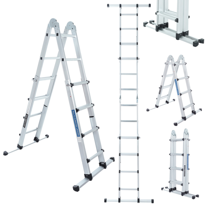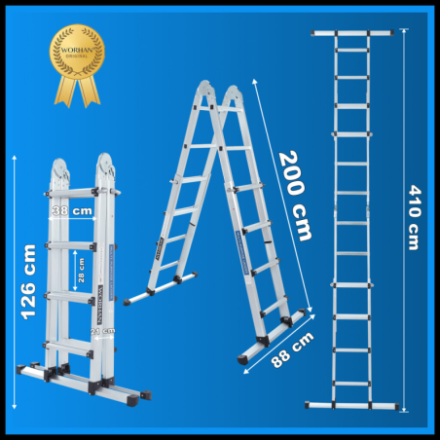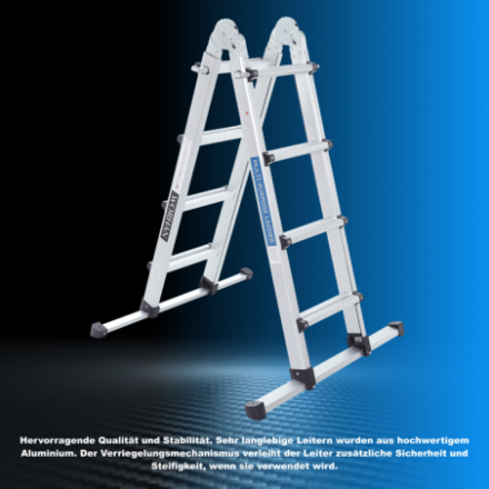 Hervorragende Qualität und Stabilität., Sehr langlebige Leitern wurden aus hochwertigem Aluminium., Der Verriegelungsmechanismus verleiht der Leiter zusätzliche Sicherheit und Steifigkeit, wenn sie verwendet wird.