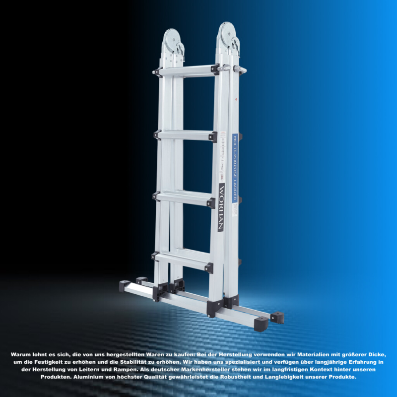 Warum lohnt es sich, die von uns hergestellten Waren zu kaufen: Bei der Herstellung verwenden wir Materialien mit größerer Dicke, um die Festigkeit zu erhöhen und die Stabilität zu erhöhen., Wir haben uns spezialisiert und verfügen über langjährige Erfahrung in der Herstellung von Leitern und Rampen., Als deutscher Markenhersteller stehen wir im langfristigen Kontext hinter unseren Produkten. Aluminium von höchster Qualität gewährleistet die Robustheit und Langlebigkeit unserer Produkte.